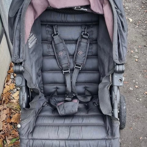 Baby Jogger City Mini GT klapvogn i sort farve. Kan foldes sammen for nem transport og opbevaring. Designet til at give komfort og funktionalitet til både barn og forælder.