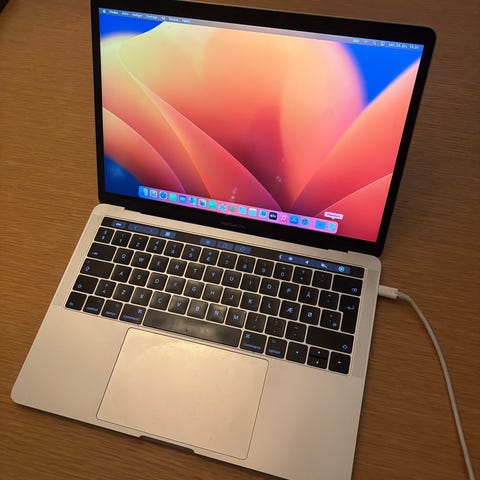MacBook Pro 13" fra 2017 i farven silver og 256GB harddisk. Virker som den skal og har almindelige brugsspor. Batteriet er testet af teknikker, og holder stadig 3-4 timer ved f.eks. video og film streaming.
