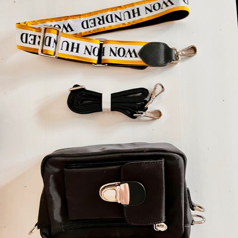 Won Hundred taske til kvinde i sort farve. Tasken har flere rum med lynlås og en justerbar skulderrem. Materialet er tekstil med metalbeslag.