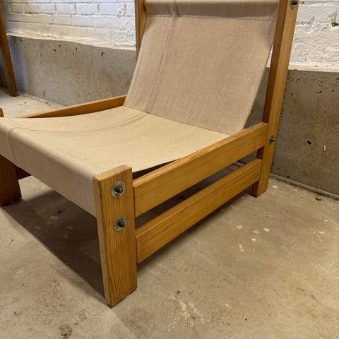 Super flotte vintage lænestole i fyrretræ. Står i rigtig flot stand.