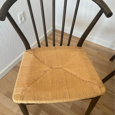 Sælger 4 originale Ilva Noak spisebordsstole i træ med læder. Stolene er brugte i tre år og har tydelige spor i læderet efter katte (ridser/neglemærker). Træet er pænt, og stolene er stadig stabile.