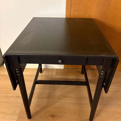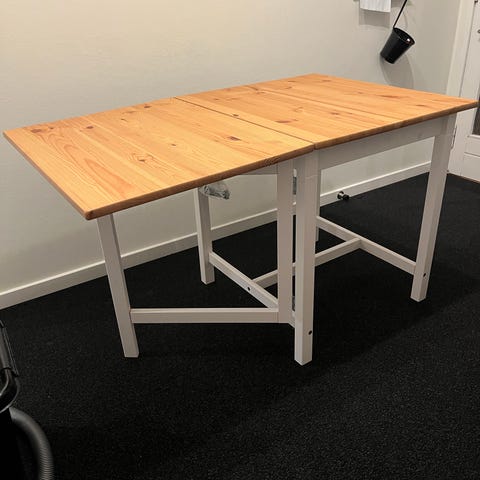 IKEA pinntorp sammenklappeligt bord i træ med pladsbesparende design. Bordet har en naturlig træfinish og kan foldes sammen for nem opbevaring. Velegnet til små rum eller som ekstra bordplads.