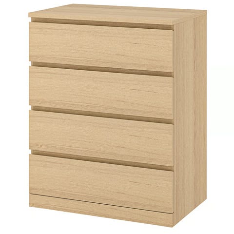 MALM Kommode 2 skuffer, egetræsfiner med hvid bejdse, 40x55 cm