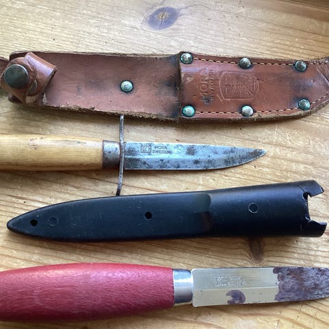 Mora Kniv med læderskede og træskaft
