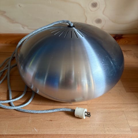 Super fin retro loftlampe. Der er ridser i skærmen, og den er også en anelse skæv i pladderne (se billede).