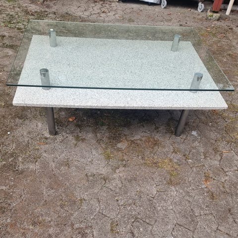 Meget tung marmorlignende bordplade. Meget stabilt bord. Har en lille skade i pladen, men ikke noget der betyder noget.
