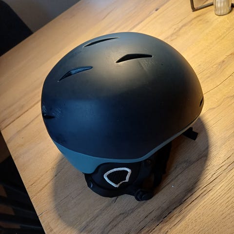 Skihjelm - Outtreck - str. S 48-52 cm. Sort. Kan justeres. Ørevarmere kan klikkes af og på.