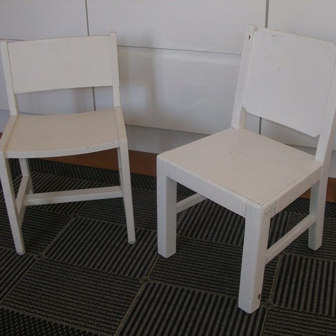 Retro børnestole i lakeret bøg med patina, mål: B: 33 x D: 33 x H: 30 / 58 cm, pris: 200 kr pr/stk - samlet salg foretrækkes
