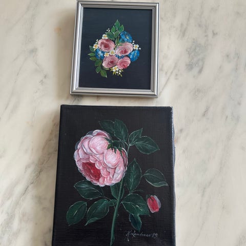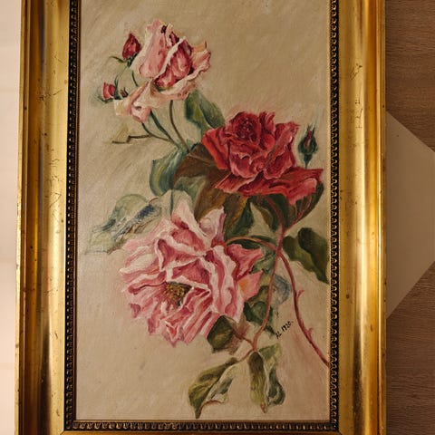 Et stemningsfuldt og klassisk blomsterstilleben, der passer perfekt ind i både moderne og traditionelle hjem – ideelt til stue, soveværelse, entré eller sommerhus.