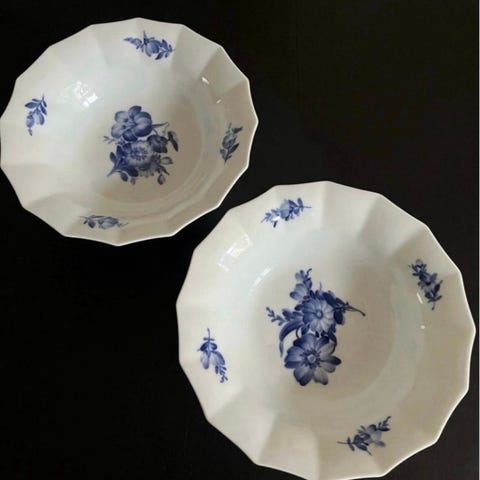 Sukkerskål og flødekande, kantet, fra Royal Copenhagen, blå blomst.