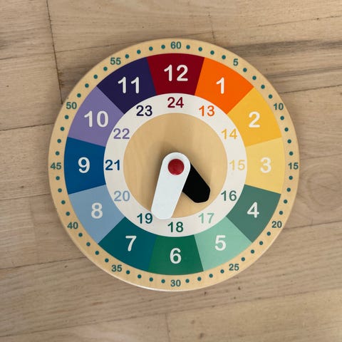 Børneur med motiv af en klovn. Uret har farverige tal fra 1 til 12 og kan brugs til børn for at lære klokke.