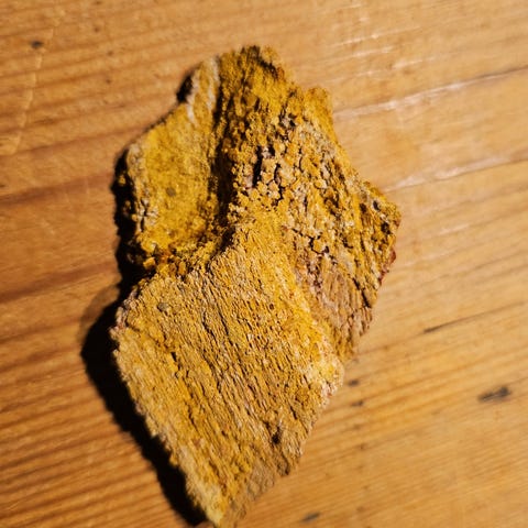 Et rigtig fint stykke dinosaurknogle fra 'red sandstone beds' nær Taouz, Marokko.