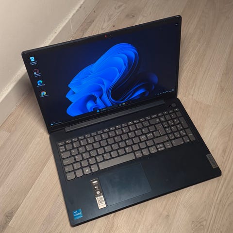 Lenovo laptop med gråt kabinet og standard tastatur. Bærbar computer velegnet til daglig brug og arbejde.
