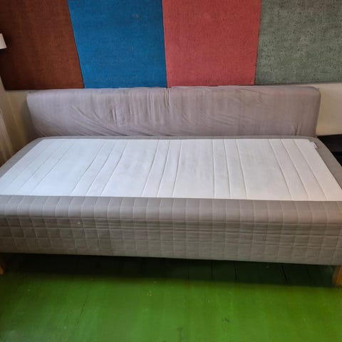 IKEA SKÄRER boksmadras med målene 90x200 cm. Madrasrammen er fremstillet i træmateriale. Velegnet til enkeltsenge.