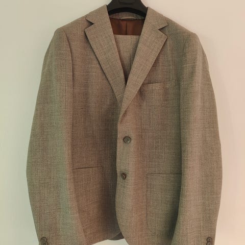 Jakkesæt: Selected Oasis slim fit i sand med hvid Matinique skjorte str S