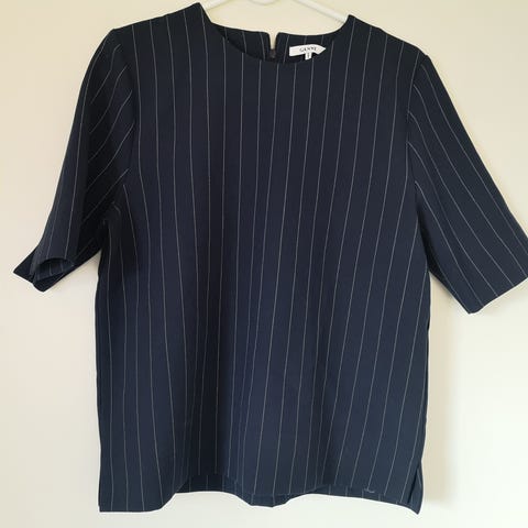 Sælger denne flotte Ganni top med rød/sort leopardprint og sorte ærmer. Den er brugt få gange og fremstår i rigtig fin stand uden synlige brugsspor.