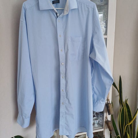 Flot herreskjorte lyseblå str. 43/44, XL. Lettere slidt i nakken men ellers super fin stand. Fra ikke ryger hjem. Afhentet eller plus 70kr. til forpakning og forsendelse med tracking.