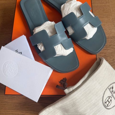 Sælger disse hermes sandaler - model Oran sandal. Brugt en gang. Æske og skoposer medfølger.