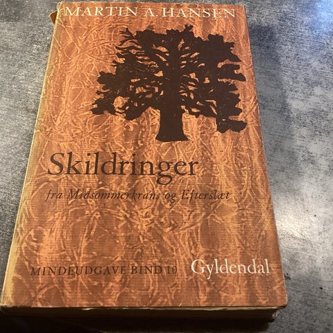 Midsommer krans , Martin A. Hansen , genre: digte, Martin A. Hansens essayistik omfatter foruden slægts- og barndomserindringer emner fra digtning, historie og natur. Han skrev inden for denne genre fra sine tidligste forfatterår lige til sin død, men udsendte mens han levede kun essaysamlingen Tanker i en Skorsten, 1948, og den naturskildrende bog illustreret af Ernst Clausen Dansk Natur, 1953. Efter hans død udkom essaysamlingen Midsommerkrans, 1956. Nærværende udvalg koncentrerer sig om historiske emner behandlet af Martin A. Hansen de sidste 15 år af hans liv. Sideløbende med sin. Martin A. Hansens sidste noveller og skildringer. Bogen udkom første gang i Andre bøger af Martin A. Hansen. Vis mere Verdensromanen. Martin A. Hansen. Martin A. Hansens essayistik omfatter foruden slægts- og barndomserindringer emner fra digtning, historie og natur. Han skrev inden for denne genre fra sin. Martin A Hansen. Brugt bog. Verdensromanen. Historiske essays. Beskrivelse; Yderligere info; Anmeldelser. Illustreret med træsnit af Sven Havsteen-Mikkelsen. Verdensromanen. Martin