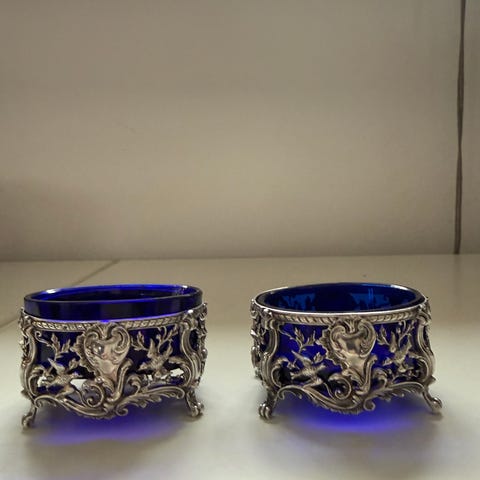 2 gamle krystal saltkar