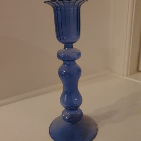 Glas lysestage m blåt
