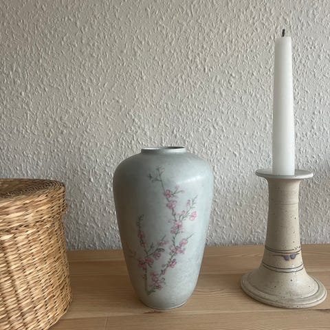 Sjov og dekorativ vase af et let ler(?) materiale.