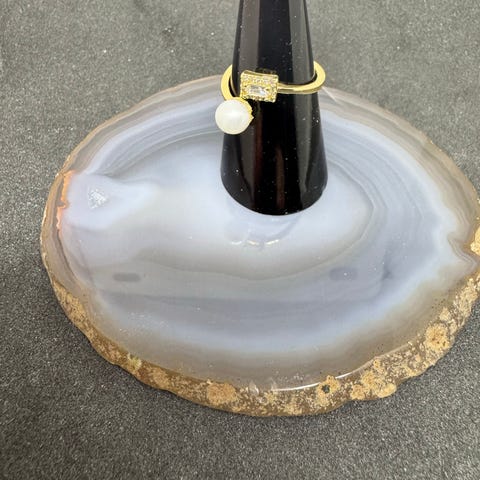Ring med perle og zirconia