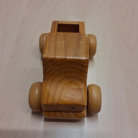 Produktet er en træmodel af en bil, med detaljeret snit og bevægelige dele. Brunt.,Afhentes i:,Røde Kors Aalborg (851),Bemærk at mail, chat og beskeder ikke besvares, og varen skal købes på knappen "Gå til varen"