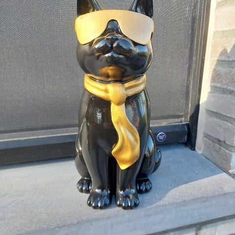 Polyresin havefigur med titlen « funny gnome with sunglasses », oprindelse Europa, i fremragende stand, u-signeret, mål: 41 cm høj, 14 cm bred og 15 cm dyb. Klik på den blå "gå til varen" knap, for at købe eller byde på denne vare. Den samlede pris vil blive vist inden du afgiver dit bud.