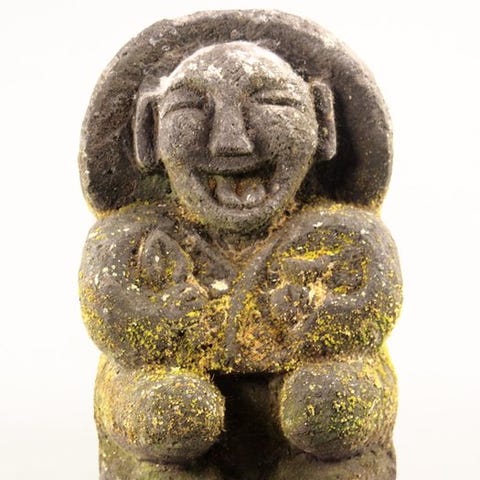 Suiseki Monyo-Ishi, natursten fra Japan fra Heisei-perioden, 9 × 15 × 4 cm, i god stand, solgt med kunstnerens signerte daiza og stand. Klik på den blå "gå til varen" knap, for at købe eller byde på denne vare. Den samlede pris vil blive vist inden du afgiver dit bud.