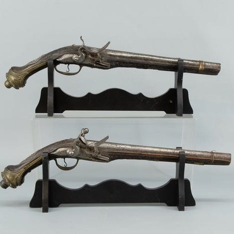 Ottomansk yataghan-sværd i træ, sen-ottomansk periode, oprindelse Tyrkiet; ét stykke i rimelig tilstand. Klik på den blå "gå til varen" knap, for at købe eller byde på denne vare. Den samlede pris vil blive vist inden du afgiver dit bud.