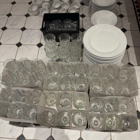 Smukt, skinnende, hvidt porcelæn med dekorrand.