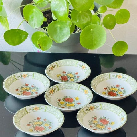 Sæt af skåle med smuk dekoration i perfekt stand, med nogle tegn fra årenes gang, vil blive sendt med trackingkode, forsikret for at sikre, at det ankommer i perfekt stand.