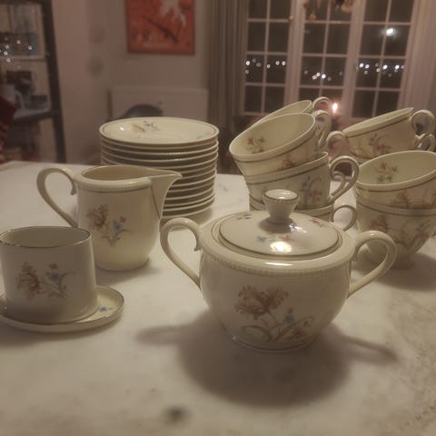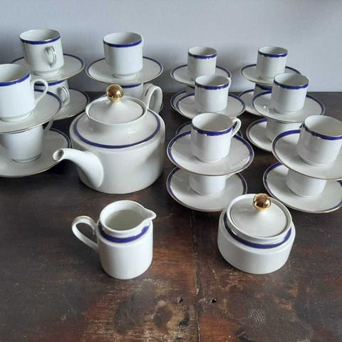 Den officielle pris på kaffekopperne og kaffeskålene er 869 euro, så I kan forestille jer, at et kaffestel til 6 personer er meget dyrt.