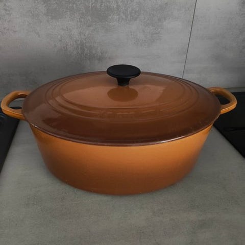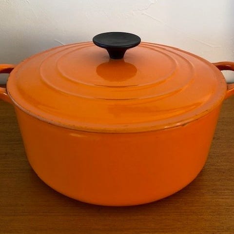Pragtfuld stor emaljeret støbejernsgryde, ideel til store sammenkomster, til familiemadlavning eller i professionelt køkken.