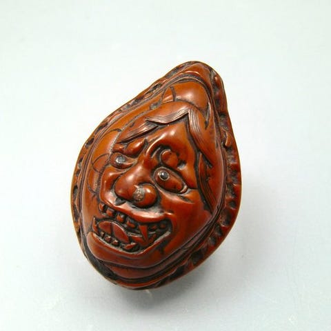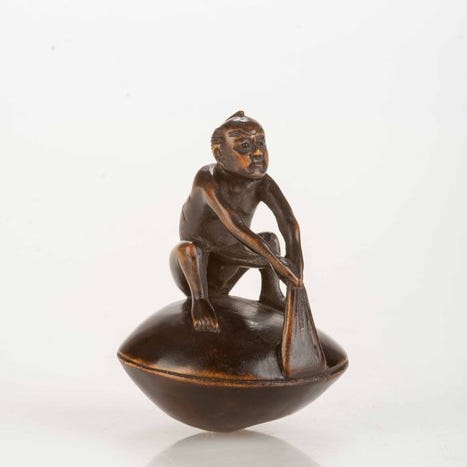 Højt netsuke af træ fra Japan, Edo-perioden (1600–1868), afbildende Seiobo, Vestens dronningemor, står i en elegant lang kjole og holder en kurv; højde 93 cm, bredde 27 cm, dybde 18 cm, i fremragende stand; ikke signeret. Klik på den blå "gå til varen" knap, for at købe eller byde på denne vare. Den samlede pris vil blive vist inden du afgiver dit bud.