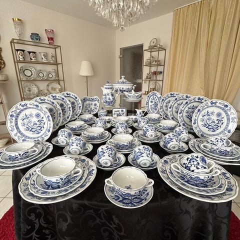 Egenskaber ved oprindelse og eksklusivitet: Denne samling har betydelig tillagt værdi på grund af det sjældne mærkat "Willi Geck Exclusiv". Willi Geck er en anerkendt luksusforhandler i Wiesbaden, Tyskland, kendt for udelukkende at udvælge porcelæn af højeste kvalitet til sine kunder. Dette mærke bekræfter, at sættet er udvalgt som et premium, "førstevalg" tilbud, hvilket gør det