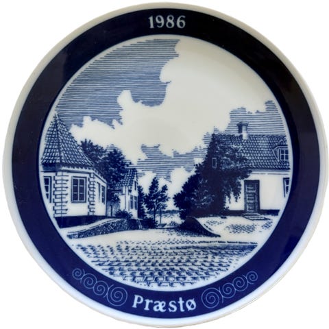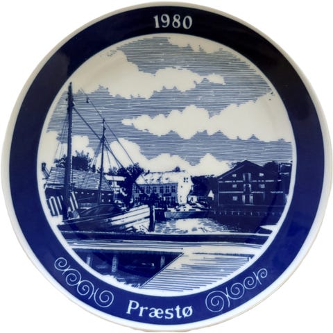 Super flot blå platte fra danske Millhouses serie med platter fra Præstø.