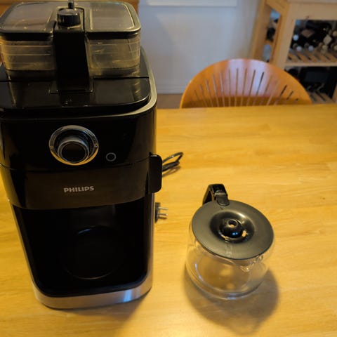 Kaffemaskine i god kvakitet og stand. Kværner bønner eller brygger på standard bønner. Indstillinger for kaffestyrke og mængde.