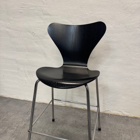 Flot Junior syver barstol med krom stel, skal i sort eg -tydelige årer.