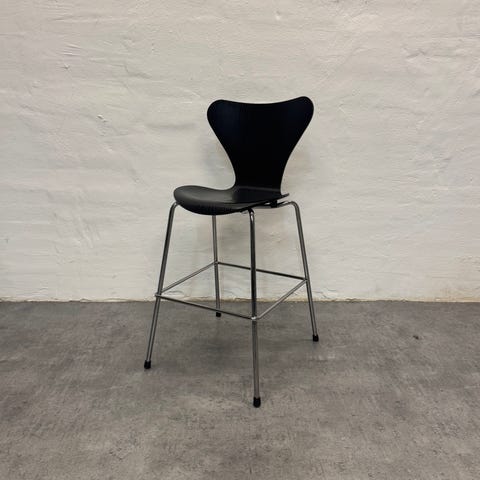Flot Junior syver barstol med krom stel, skal i sort eg -tydelige årer.