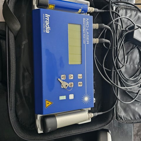 Sælger en brugt PowerLaser Classic 500 (808nm) fra PowerMedic – en professionel laser til behandling af muskler, led og væv.