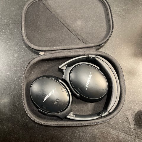 Bose QuietComfort 45 trådløse hovedtelefoner i sort. Hovedtelefonerne har en over-ear pasform og er designet til at levere støjreduktion og trådløs lydoplevelse. Leveres med opbevaringsetui.