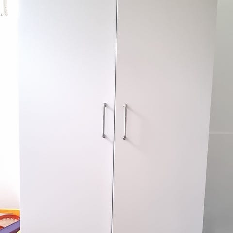 Garderobeskab med bøjlestang. Perfekt oven på en kommode.