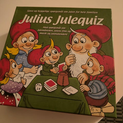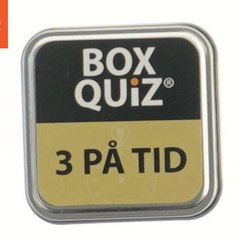 Denne genstand er en lille, firkantet metaldåse med mærket 'Box Quiz'. Forsiden viser ordet 'JULE KALENDERE', og ser ud til at indeholde quizspørgsmål. Bagsiden indeholder information om målgruppen og anbefalinger for brug. Dåsen kan anvendes som hjernevridere i lommeformat og er ideel til rejser, fester og eftertanke.