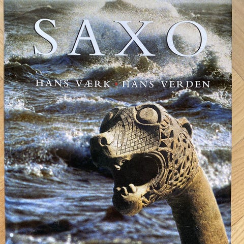 Saxo - genfortalt af Helle Stangerup, Saxo, emne: historie og samfund, 2 bind i kasssette. Hardbacks med smudsomslag. Smudsomslag og kassette med enkelte brugsspor. Aschehoug 1999 (g-452-3100)