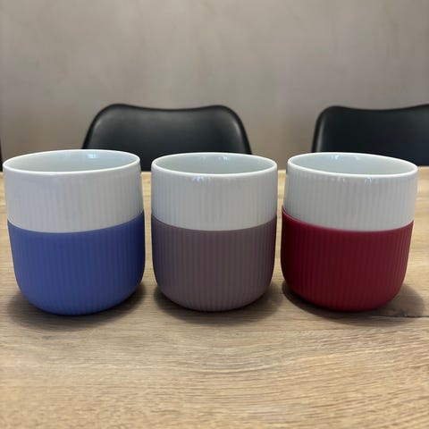 Kruset fra Royal Copenhagen har en elegant stil i porcelæn med en moderne følelse. Det har dekorative riller med håndmalede detaljer og et betræk i silikone for et bedre greb. Servér kaffe med charme.