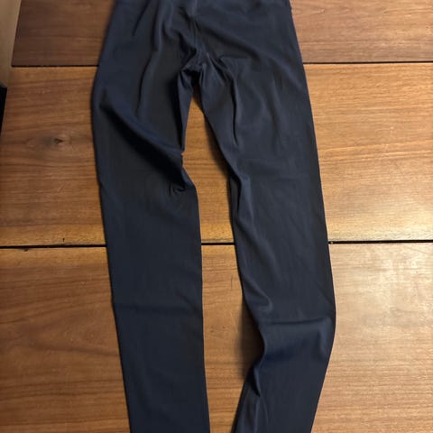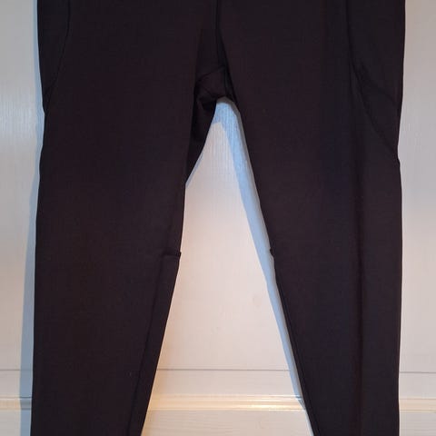 Sorte træningstights med høj talje og snøre i linningen. Tightsene har en lille lynlåslomme på venstre hofte og refleksdetaljer nederst på benene.