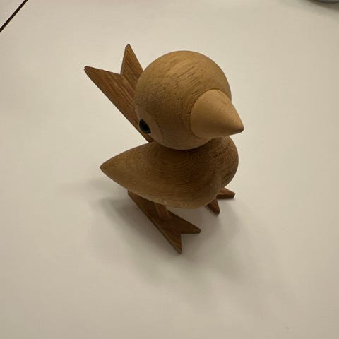 Træfugl figur i lyst træ / Gunnar Flørning Spurv