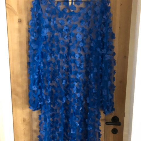Sælger denne elegante, figursyede kjole i en flot klar blå farve. Kjolen er kun brugt én enkelt gang og fremstår derfor som helt ny – ingen slid, pletter eller tegn på brug.